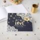 Hochzeitsgast Vorlagen - Elegante Sonnenblumen, Vintage Spitzen-Rahmen und schicke Streichellichter auf dem Navy Blue Background. Ein perfektes Design für Ihren großen Tag! Alle Textstile, Farben, Größen können an Ihre Bedürfnisse angepasst werden.