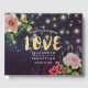 Hochzeit Gästebuch Vorlagen - Elegante Imitate Gold Foil Script, Watercolor Floral Pink Roses und String Lights on Lila Sparkle Bokeh Licht Hintergrund. Ein perfektes Design für Ihren großen Tag! Alle Textstile, Farben, Größen können an Ihre Bedürfnisse angepasst werden.
