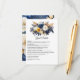 Blühende blaue, weiße und goldfarbene Gästekarte für Hochzeitsgäste, die auf Ihre Veranstaltungsspezifikationen zugeschnitten ist.