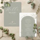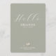 Begrüßen Sie Ihre Gäste auf eine durchdachte und elegante Weise mit dieser doppelt verwendbaren Platzkarte und Speisekarte aus der Two Are Better Than One-Hochzeitskollektion. Die Vorderseite zeigt einen weichen Salbeigrün-Hintergrund mit einer herzlichen Begrüßung, die mit "Hallo" beginnt, gefolgt vom Namen des Gastes, wodurch sich jeder Teilnehmer persönlich zu Ihrer Feier eingeladen fühlt.
