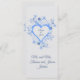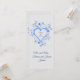 Eine kleine Sake-Karte für Hochzeiten wäre schön, wenn man sie an jedem Tisch als Gast platzieren würde. Er drückt die Anerkennung der Braut und des Bräutigams für die Anwesenheit aus. Das Design ist ein romantischer Rahmen mit dem Namen des Ehepaares an der Vorderseite. Das offene Herz ist himmelblau. Das Herz ist mit zwei verschiedenen Blume geschmückt. Die größte Blume mit Blütenblättern ist paletblau. Die kleinsternförmige Blume ist königsblau. In hübschen Wirbel gibt es anmutiges, kurvenreiches Gras, zusammen mit winzigen Blätter. Text auf der Rückseite hat eine Danksagung. Sie können das Herz auf der Rückseite löschen und ein Foto des Paares hochladen, wenn Sie möchten. Sie können den gesamten Text ändern, um ihn zu personalisieren. Auch die Hintergrundfarbe kann geändert werden. Andere Artikel mit diesem Design sind auch in der "Liebe" Kollektion in meinem Shop erhältlich.