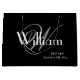 Hochzeitsgeschenk Trauzeuge Elegante Custom Classic Cool Black Large Geschenktasche. Klassisch elegante Monogram + Name Vintag Chic Black Large Gift Bag. Fügen Sie diese besondere Touch mit einer mit Monogramm Geschenktasche, die speziell für Ihren besten Mann entwickelt wurde. Klicken Sie auf diese Vorlage personalisieren, um Ihren mit Monogramm Vor- und Namen sowie Ihr Datum schnell und einfach anzupassen. Erstellt durch den Künstler RjFxx *Copyright *Alle Rechte vorbehalten. #BestManGift #BestManGiftBag #Wedding #ZazzleMade