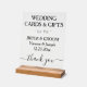 Moderne minimalistische Hochzeitskarten und Geschenke für Braut und Bräutigam sind in schwarzer Typografie mit klarem Hintergrund geschrieben. Fügen Sie die Namen und das Hochzeitdatum des Ehepaars ein. Eleganter Hochzeitstisch mit Empfang. Danke, dass du in schwarzer Schrift geschrieben bist. Entwürfe von TamiraZDesign.