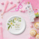 Schöne gestrichene Aquarelltafel Rose Hochzeitspapier Teller. Die Farbtöne Weiß, Gelb und Grün sind in den Farben Weiß, Gelb und Grün gehalten. Bearbeiten Sie diese Art Hochzeit Teller mit Ihrem eigenen Namen und Hochzeitsdatum. Ideal für diejenigen, die Einfachheit und Romantik mögen. Ideal für Kirchen, Landhäuser, Gärten, Wälder oder Wildblumen und für einfache Heiratsfeiern. Eine großartige persönliche Ergänzung zu Ihren Hochzeitstischen oder nach der Hochzeit Buffets oder Party Essen. Personalisieren Sie Ihre eigenen Hochzeitsnamen. In Aquarellfarbe gestrichen und von Sarah Trett entworfen.