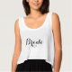 Hochzeit BRIDE Tankfüllung Tank Top für Frauen. Trendy Hipster Mode in Shirts und Tops mit benutzerdefiniertem Text. Coole lässige Kurzschlusskleidung für Damen, die bald den Knoten knüpfen. Elegante Schriftzeichen-Schriftzeichen-Vorlage. Niedliche Kleidung für Verlobungsfeier, Bachelorette, Mädchen übernachten, Brautparty etc.