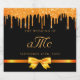 Imitate goldfarbene Schleife und Bogen mit Imitaten goldenen Glitzer Tropfen, Farbe Tropfen aussehen. Ein schicker schwarzer Hintergrund. Personalisieren und fügen Sie Ihre Monogramm, Initialen und Hochzeitstag. Ihr Familienname ist in der Mitte mit einem Hauptstadt-Brief. Goldene Buchstaben.