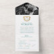 Hochzeitsgrauweißes Ziergold-Monogramm All In One Einladung