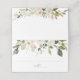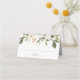 Elegante Platzkarten für Hochzeiten im Grünen: Dieses Design besticht durch eine einzigartige Vegetation und ein einzigartiges Laub mit weißen Rosen. Schreib die Namen und Tischnummern deiner Gäste ein. Das hier ist eine zusammenklappbare Zeltversion der Platzkarte.