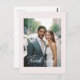 Hochzeitskarte, handschriftlich, hellrosa "Danke", 1 Foto. Minimal, modern, schön. Unsere eleganten Hochzeitskarten sind eine schöne Möglichkeit, Ihren Gästen, Ihrer Familie und Ihren Freunden zu danken. Die Vorderseite der Karte erlaubt es Ihnen, Ihr Lieblings-Foto von Ihrem Hochzeitstag aus hochzuladen und so einen sinnvollen Sake für Ihre Lieben zu schaffen, um sie zu schätzen. Die Rückseite der Karte ist in einem einfachen, klassischen Weiß gestaltet, mit Platz für eine persönliche Danksagung. Geschrieben in einem stilvollen Skript-Schriftart, wird Ihre Nachricht ein warmes, handgeschriebenes Gefühl haben. Mit den verschiedenen Farboptionen können Sie den passenden Farbton auswählen, um Ihr Foto zu ergänzen und so ein einheitliches und poliertes Aussehen zu gewährleisten. Diese Karten bieten eine zeitlose und moderne Art, denen zu danken, die mit Ihnen gefeiert haben, und sie mit einer herzlichen Erinnerung an Ihren besonderen Tag verlassen.