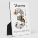 Gedenken Sie Ihr drittes Jahr der Ehe mit unserem dreijährigen Hochzeitstag Foto Collage Tabletop Plaque mit Easel. Diese elegante Collage arrangiert wunderbar 6 hochgeschätzte Fotos in Form einer Zahl "3", sodass Sie als verheiratetes Paar die besonderen Momente aus jedem Monat Ihrer Reise erleben können. Die auf hochwertigem Material gedruckte Collage ist mit einer schlanken integrierten Maske für eine einfache Darstellung auf jedem Tisch oder Regal konzipiert. Es gibt einen Text, der lautet: "Wir haben 3 Jahre überlebt und unsere Liebe ist noch stark". Wenn Sie möchten, können Sie diesen Text mit Ihrer eigenen Nachricht anpassen.