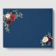 Elegantes Kartendesign mit herrlicher Aquarellfarbe Burgundy Blume Bouquets, Blumenspalte, wunderschöner, blau gepunkteter Rahmen auf weißem Hintergrund; auf der Rückseite die gleichen Blume auf einem marineblauen Hintergrund. Verwenden Sie das Tool Anpassen, um Ihre Informationen hinzuzufügen, Änderungen vorzunehmen. Für passende Artikel besuchen Sie bitte meine Burgundy Navy Blue Floral Frame Collection.