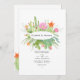 Sukkulente botanische Illustration Hochzeitseinladung mit einer großen Auswahl an Kakteen-Pflanze, darunter Riesensaguaro, Ball, Cowboy, Rotfuchsschwanz, Euphorbia-Ingens, Hasen-Ohr (Polka dot), Haarbürste, prickly Birne und handgefertigte Kakteen.