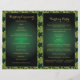Goldenes und grünes irisches Kleeblatt und Rahmen Hochzeitsfeier gefaltet und Party-Programm mit einem grünen Klee mit goldener Kontur, einem Gradienten grünen Rahmen mit goldener Kontur, einem goldenen Banner und einem Muster mit Kleeblättern. Dieses moderne, elegante und stilvolle Template-Design ist vollständig anpassbar und ist perfekt für St. Patrick's oder St. Patrick's Day irischen Hochzeiten. Man muss es in der Mitte falten. Wählen Sie nur diesen Papierwert aus, da er sich gut faltet.