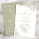 Eine einfache Vorlage für die Hochzeitsfeier mit einem eleganten, minimalistisch-blumengeschmückten, einfachen Kalligrafieschrift mit Begrüßungstyp, in einem botanischen Salbeigrün und klassischem Stil.