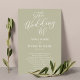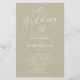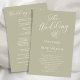 Eine einfache Vorlage für das Hochzeitsfeierprogramm mit elegantem, minimalistischem, einfachem Kalligrafieschrift mit Begrüßungstyp, botanischem Weissgrün und klassischem Stil.