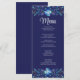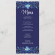 Mit unserer "Navy Blue Mexican Floral Fiesta Wedding Menu Card" können Sie Ihren Empfängen Eleganz verleihen. Die Karte besticht durch einen marineblau-blauen Hintergrund mit handbemalten blauen Blumenmotiven und strahlt Eleganz und Stil aus. Set den Ton für eine lebendige Feier mit diesen schicken Menükarten, die perfekt das Wesen einer mexikanischen Fest einfangen. Der knusprige weiße Text präsentiert Ihre Menüdetails elegant vor dem Hintergrund der reichen Marine und sorgt für eine Touch von Eleganz und Stil zu Ihrer Hochzeitsdekoration.
