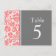 Elegante und moderne pfirsichfarbene, rosa, graue und weiße Hochzeitskarten mit Vintagem Tischnummer Muster aus edlem und klassischem Blumendach. Passen Sie diese Karten an, um für jeden Tisch bei Ihrer Hochzeit eine eigene Tischnummer zu erstellen. Muster in einer breiten Palette von passenden Hochzeitsprodukten erhältlich.