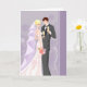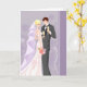 Die Hochzeitskarte wird mit einem hübschen Braut- und Bräutigam-Ausdruck gezeigt. Bleib drinnen. Passen Sie diese Karte an und fügen Sie Ihre eigene Nachricht hinzu oder kaufen Sie, wie es ist. Bild