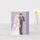 Die Hochzeitskarte wird mit einem hübschen Braut- und Bräutigam-Ausdruck gezeigt. Bleib drinnen. Passen Sie diese Karte an und fügen Sie Ihre eigene Nachricht hinzu oder kaufen Sie, wie es ist. Bild