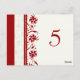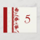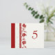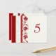 Elegante und moderne Hochzeitskarten in Rot und Creme, mit stilvollen und zarten Blume-Tischnummern-Mustern. Passen Sie diese Karten an, um für jeden Tisch bei Ihrer Hochzeit eine eigene Tischnummer zu erstellen. Muster in einer breiten Palette von passenden Hochzeitsprodukten erhältlich.