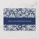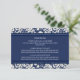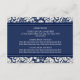 Karteneinsätze für die Hochzeit in elegantem und modernem dunkelmarineblau-weißem klassischem Blumendüsternmuster. Passen Sie diese Karten mit Ihren Hochzeitsanweisungen oder anderen Informationen an, die Sie bei Ihrer Hochzeitseinladung erhalten können, auch ideal für Jubiläumsfeiern oder Geburtstagsfeiern. Erhältlich in einer breiten Palette von passenden Hochzeitsprodukten.