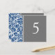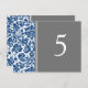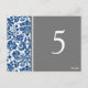 Elegante und klassische dunkelmarineblau-, grau- und weiße Hochzeitskarten mit klassischem und schicken Vintagen Damast-Muster. Passen Sie diese Karten an, um für jeden Tisch bei Ihrer Hochzeit eine eigene Tischnummer zu erstellen. Muster in einer breiten Palette von passenden Hochzeitsprodukten erhältlich.