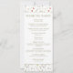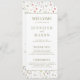 Genießen Sie den Charme der rustikalen Hochzeitsmenükarten in Aquarellfarben, die mit eleganten und farbenfrohen Blüten der Wiesen geschmückt sind und durch einen zarten, staubigen grünen Kalligrafietext ergänzt werden.