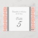 Elegante und klassisch pfirsichfarbene, rosa, graue und weiße Hochzeitskarten mit romantischem, Vintagem Blumendach. Passen Sie diese Karten an, um für jeden Tisch bei Ihrer Hochzeit eine eigene Tischnummer zu erstellen. Geben Sie Ihre Namen und das Hochzeitstermin ein. Muster in einer breiten Palette von passenden Hochzeitsprodukten erhältlich.
