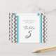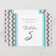 Elegante und moderne aquamarine, dunkelkohlefarbene, graue und weiße Hochzeitskarten mit lustigen Retro-Zickzack Zickzackstreifen-Streifen-Muster. Passen Sie diese Karten an, um für jeden Tisch bei Ihrer Hochzeit eine eigene Tischnummer zu erstellen. Geben Sie Ihre Namen und das Hochzeitstermin ein. Muster in einer breiten Palette von passenden Hochzeitsprodukten erhältlich.