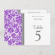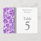Elegante und moderne, lila, graue und weiße Hochzeitskarten mit Vintagen Tischnummer Mustern aus edlem und klassischem Blumendach. Passen Sie diese Karten an, um für jeden Tisch bei Ihrer Hochzeit eine eigene Tischnummer zu erstellen. Geben Sie Ihre Namen und das Hochzeitstermin ein. Muster in einer breiten Palette von passenden Hochzeitsprodukten erhältlich.