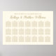 Einfach elegantes Hochzeitsplakatdesign mit einem Monogramm der Braut- und Bräutigamen und individuellem Vorlagentext für einundzwanzig (21) Tische mit Gastnamen. Die Farben sind mit Champagner / antikem Gold mit hellen Elfenbeinhintergrund gestaltet.