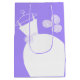 Hübsche Bräunungsgeschenktasche in lila Tönen mit einem stilisierten Hochzeitskleid und Blume auf lila Hintergrund. Ein individualisierbares Design für Sie, um mit Ihrem eigenen Text, Bildern und Ideen zu personalisieren.