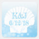 Hübsche blaue und weiße Muschel, Blasen und Seesterne-Aufkleber am Meer, hübsch für Hochzeitsfeiern oder Babydusche. Personalisiert werden diese durch das Hinzufügen eines eigenen Hochzeitdatums und der Initialen von Braut und Bräutigam in den personalisierten Bereich.