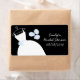 Hübsches Brautlabel in Blautönen mit einem stilisierten Hochzeitskleid und Blume auf schwarzem Hintergrund. Ein individualisierbares Design für Sie, um mit Ihrem eigenen Text, Bildern und Ideen zu personalisieren. Kunstwerk von Jess Perry.