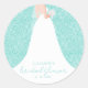Elegante, stilvolle Aufkleber sind perfekte Brautparty-Aufkleber mit einem schönen modernen Hochzeitskleid auf einem weißen Rosenmuster über einem türkisfarbenen Hintergrund und Ihre Details in schicken Schriften - für Gastgeschenke oder Dankeschön-Aufkleber. Mehr Farben und passende Einladungen und mehr in unserem Shop.