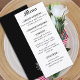 Das Hochzeitsmenü zeigt ein schönes, schwarzes Kleid im gotischen Stil, das mit detaillierten schwarzen Aquarellfarben-Rose geschmückt ist. Diese Blumendetails verleihen Charme und Eleganz und verleihen dem Ganzen das Gefühl der Feier.