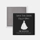 Elegant Speichern Sie das Date Magnet mit einem weißen Hochzeitskleid. Passen Sie Ihren Namen und Ihr Hochzeitsdatum an. Eine kreative Art, Ihre Gäste für Ihre Hochzeit Save the Date zu bringen.