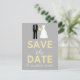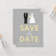 Hochzeitskleid und Tuxedo Ankündigung Datum freihalten in Gelb. Ankündigen Sie Ihre bevorstehende Hochzeitsfeier auf niedliche und klassische Weise mit diesem bezaubernden Hochzeitskleid und Tux! Diese Save the Date Karte ist voller schicker, spielerischer Stil