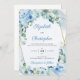 Dusty Blue Floral Gold Geometric Rahmen Hochzeitseinladungen, Kontaktieren Sie mich für passende Artikel oder für Anpassungen, Blush Rose ©