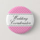 Hochzeitskoordinator/-planer pinback Knopf für Hochzeiten, die Hochzeits-Empfänge und die Proben. Rosa und weißer Tupfenentwurf. Hintergrundfarbe kann geändert werden.