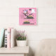 Die Hochzeitskuchen werden mattiert gewartet. Einer singt. Einer schläft. Es gibt einen Vanille-Zuckerguss. Es gibt auch Schokoladensirup, der über die Scheiben tropft. Ja. LOL. Die Krawatte und der Schleier hängen an der Wand. Bald werden sie genutzt werden. Diese Uhr feiert die bevorstehende Hochzeit und ist ein nettes, skurriles Geschenk für das Ehepaar. Personalisierbar. Originalwerk; © Sharon Lee Hudson. Alle Rechte vorbehalten.