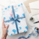 Schöne stylisierte lose Waschwasserfarbe Wildblume in hellblau, weiß und graue Kunst Blumenzwiebelbraut und Zierzimmern Namensschild Papier. Passen Sie sich mit eigenen Namen und Gruß der Braut und der Bräuche an. Malerei und Design von Sarah Trett.