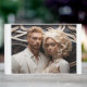 Ein zeitgenössisches Hochzeitspaar in White Apparel gekleidet, ein schönes Gästebuch für Freunde und Familie zum Genießen.