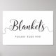 Schöne Decken signieren für Hochzeiten. Bei Hochzeiten im Freien kann es nach dem Set etwas kühl werden. Manche stellen ihren Gästen kostenfreie Decken zur Verfügung, um sie warm behalten. Decken, bitte nimm eins.
