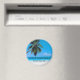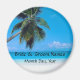 Tropische Strandszene mit Platz für die Namen der Braut und Bräutigam und einem Ort für Sie, um sich mit dem Datum der Hochzeit.