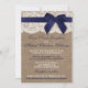 Das Design zeichnet sich durch einen hübschen rustikalen Burlap-Effekt-Hintergrund aus, der mit einem romantischen, Vintagen, weißen Spitzen-Effekt-Trim mit einem atemberaubenden Marineband mit Bogen fertig gestellt wurde. Diese Einladungen können für Ihren besondere Anlass personalisiert sein und würden die perfekte Ankündigung für jede rustikale Hochzeit, Brautparty, Verlobungsfeier, Geburtstagsparty und vieles mehr machen. *Bitte beachten Sie, dass Zazzle nur gedruckte Einladungen anbietet, sodass diese Einladungen keine echten Einladungen, Spitzen-, Bogen- oder Bandmaterialien enthalten.