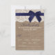 Diese rustikale Hochzeitskollektion ist ein atemberaubendes Design mit einem hübschen rustikalen Burlap-Effekt-Hintergrund und einem romantischen Vintagen Spitzeneffekt, der mit einem marineblau blauen Band mit Bogen fertig gestellt wurde. Diese RSVP-Karten können für Ihren besondere Anlass personalisiert sein und würden die passenden Beilagen für Hochzeit, Brautparty, Verlobungsfeier, Geburtstagsparty und vieles mehr machen. Entsprechende Hochzeitssachen finden Sie in der Sammlung.