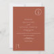 Klassisches, elegantes und weiches, blumenmonogramm Terrakotta gebranntes orangefarbenes Hochzeitsbogen-Foto mit kleinen, geblüht, blumengeschmückten Konturen, fügen Sie Ihre beiden Monogramm, mit boho terracotta beige, eine klassische Hochzeitseinladung mit einer modernen Drehung, fügen Sie Ihr Foto auf der Rückseite in Bogenform.