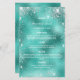 Eine elegante, glamouröse Hochzeitskarte. Personalisieren und fügen Sie Ihre Namen, Datum und das Hochzeitsmenü. Aquamarine, meergrüne Imitat metallisch aussehend, mit Imitaten Glitzer Staub. In unserem Shop sind passende Tischnummern erhältlich!