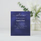 Ein klassisches Hochzeitsprogramm und ein Menü. Ein marineblauer Hintergrund. Die blaue Farbe ist ungleichmäßig. Weißer Text. Personalisieren und hinzufügen Sie Ihren Namen, Datum und sowohl Ihr Programm als auch das Menü. 1 Blatt = 1 Menü, mit dem die Kante an Kante aufgedruckt ist.